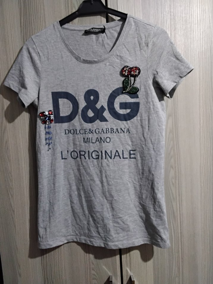 D&G Gri Kız Tişörtü, Kısa Kollu, Baskılı