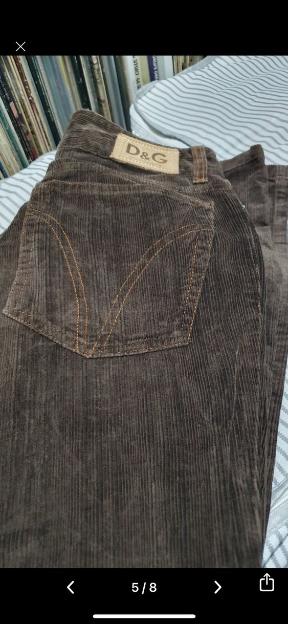 Düğmeli ön kısmı ve dar kesimiyle kahverengi kadife pantolon. Normal uzunlukta, desen içermeyen rahat sokak stili pantolon.