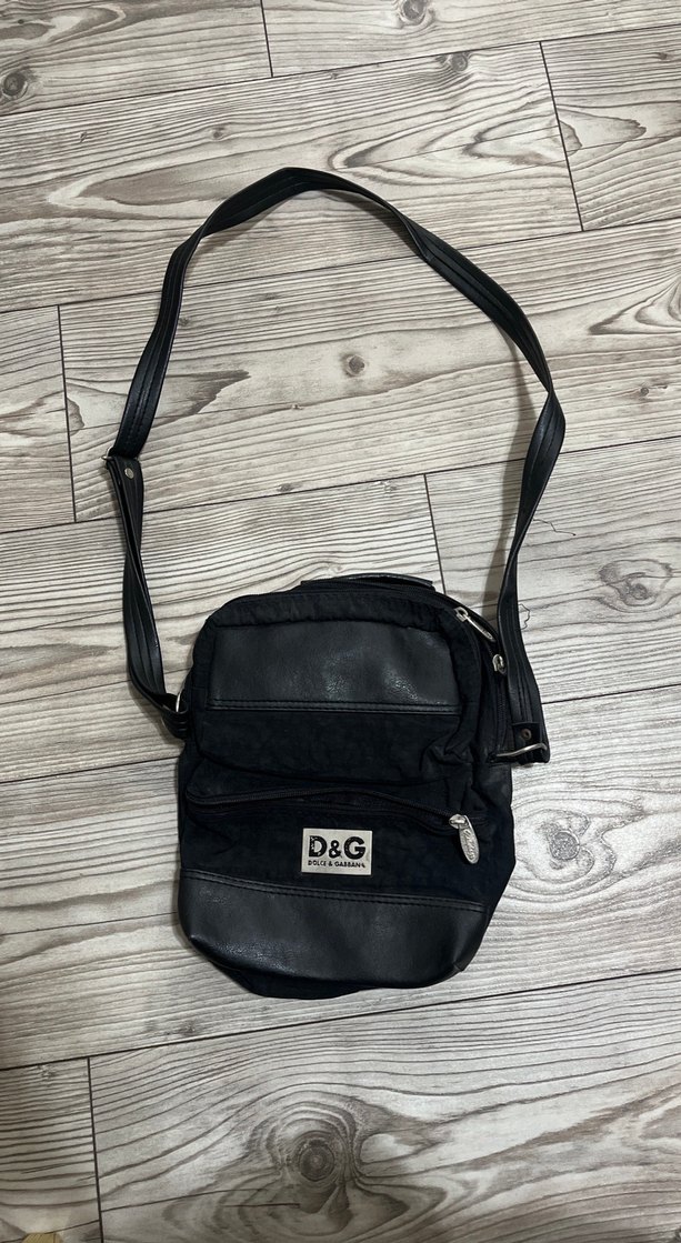 D&G baskılı siyah erkek omuz çantası, tokalı askısı ile sokak modası ve rock punk tarzını yansıtıyor.