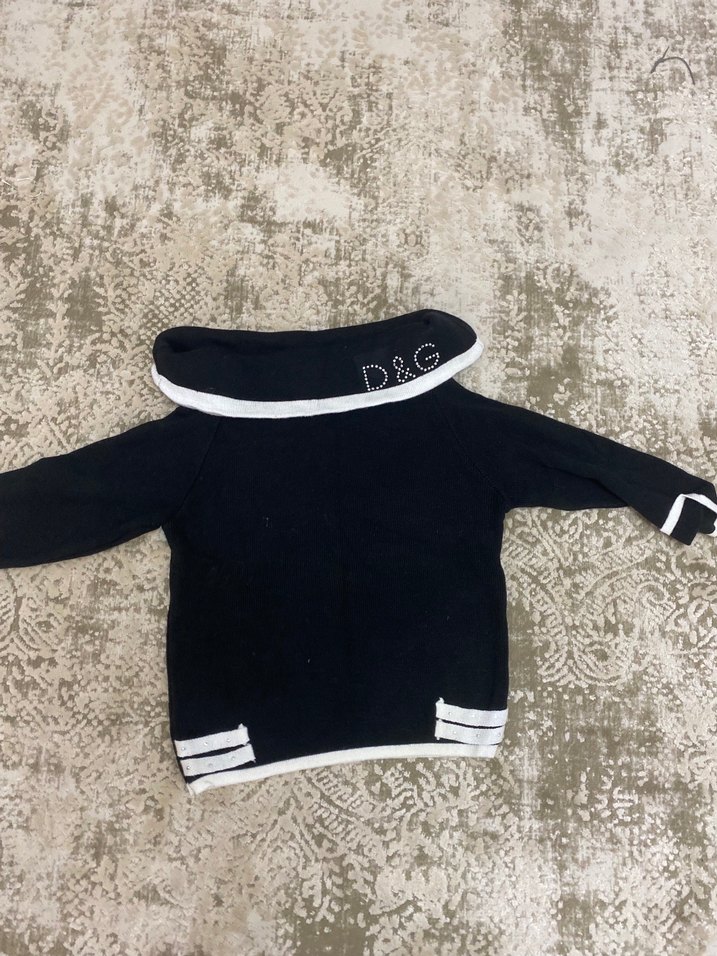 Kızlar için siyah, uzun kollu, triko dokuma sweatshirt. Yaka ve etek kısmında beyaz işlemeli detaylar bulunur.