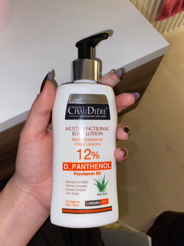 %12 D-Panthenol (Provitamin B5) içeren, allantoin, üre, vitamin ve bitkisel kompleks, çinko oksit ve aloe vera barındıran paraben içermeyen çok fonksiyonlu vücut losyonu. Lazer sonrası 1-2 kere kullanmıştım içeriği gerçekten güzel aynı zamanda güneş kremi etkisi de var kese sonrası yumuşacık oluyor. Şuan farklı ürüne geçiş yaptığım için artık kullanmıyorum