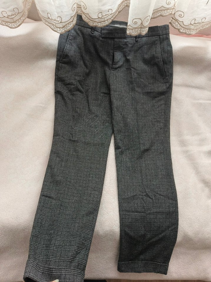Gri renkte, normal kesim ve boyda, kemerli erkek pantolon. Denim kumaştan üretilmiş, iş ve ofis ortamına uygun normcore tarzda.