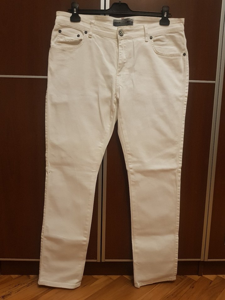 48 beden, beyaz, normal kesim i, erkek kot pantolon. Düz, hafif sentetik kumaştan, günlük rahat sokak stiline uygun. Zahmetsiz şıklık sunar. #tweendamaterkekkot #beyazerkekkotpantolon