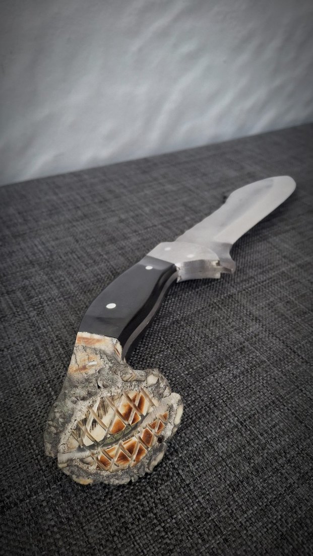 D2 çelikten üretilmiş, kök geyik boynuzu süslemeli kabzeye sahip özel parça. Dengeli yapısı ve yüksek ağız tutma süresiyle hem kullanım hem koleksiyon değeri taşır. Savaszade seçkisine ait bu bıçak tek adettir. Bilgi ve sipariş için mesaj bırakabilirsiniz.