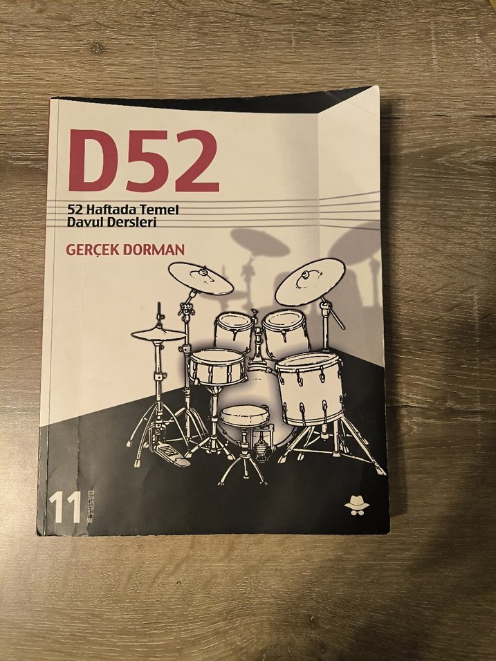 D52, 52 hafta boyunca temel davul dersleri sunar. Gerçek Dorman tarafından yazılan kitap, net çizimler ve düzenli içerik içerir. Kitabımızda yalnızca 6. haftaya kadar tükenmez kalemle işaretlemeler yapılmıştı.