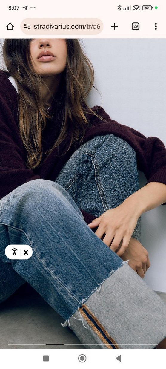 Kemer köprülü, rahat kesim orta bel jean. Yan cepli ve arkada yama cepli. Bol ve düz paça. Kıvrılmış paçalı ve yırtık kumaş detaylı. Fermuar ve metal düğme ile kapanır. Hiç kullanılmadı mağaza satış fiyatı 1790 tldir