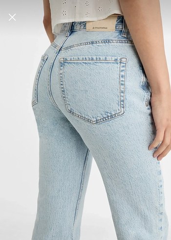 Straight fit jean, desen içermeyen pastel renkte, günlük kullanıma uygun rahat ve şık görünüme sahiptir.