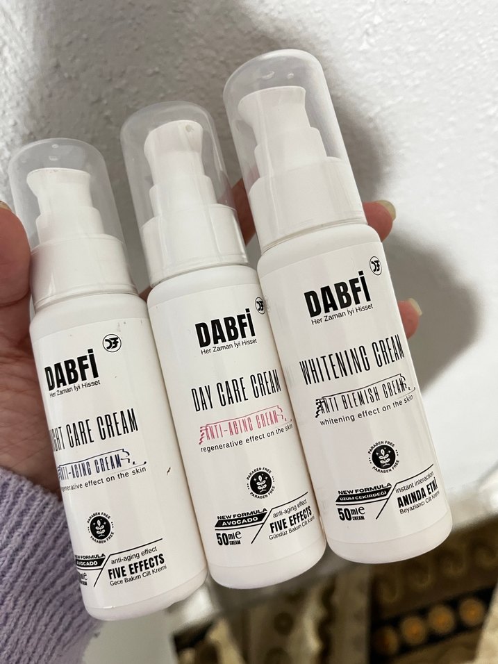 DABFi kremleri 50 ml şişede beyazlatıcı, leke karşıtı ve yenileyici etkiler sunar. Cilt bakımında etkili bir üründür.