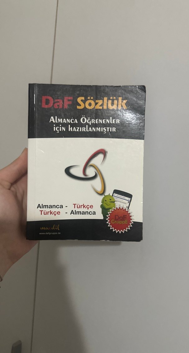 Almanca öğrenenler için hazırlanmış, Almanca-Türkçe ve Türkçe-Almanca çeviriler içeren DaF sözlük kitabı. SÖZLÜĞÜN HİÇ BİR YERINDE YAZI YIRTIK YOKTUR SAYFALARI DAHA CEVIRMEDIM BILE