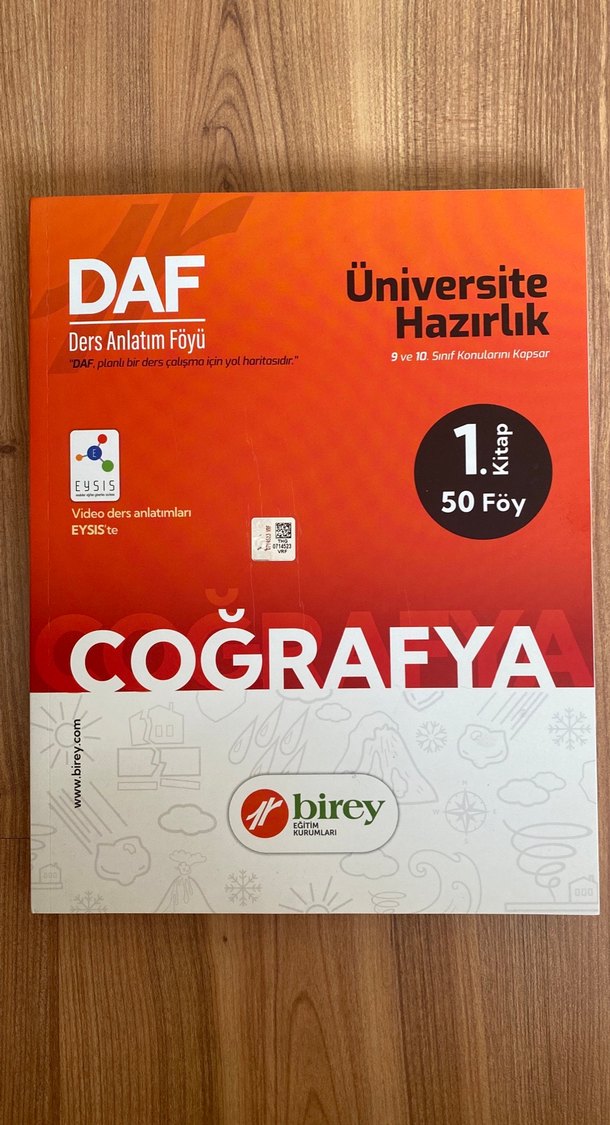 DAF Coğrafya üniversite hazırlık için 9. ve 10. sınıf konularını kapsayan 50 föy içerir. EYSIS'te video ders anlatımları bulunur.