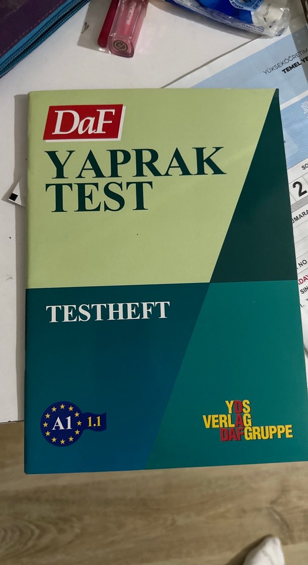 DaF yaprak test kitabı, A1 seviyesinde sınav pratiği için hazırlanmıştır. İçinde çeşitli testler ve alıştırmalar bulunmaktadır.