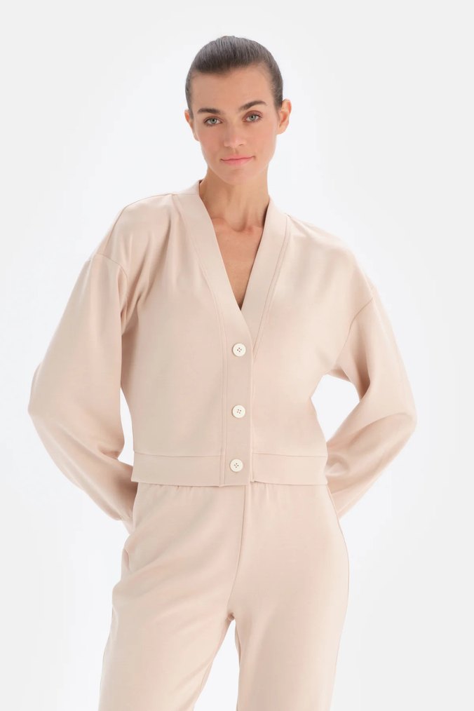 Dagi Düğmeli V Yaka Kadın Sweatshirt