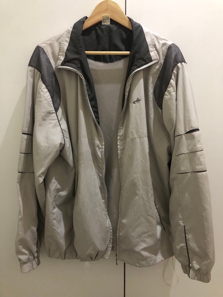 Yüksek yakalı ve fermuarlı erkek yağmurluğudur. Kaygan sentetik kumaştan üretilmiş, bol kesim ve uzun kolludur. Gri renkte, günlük kullanım için uygundur. ️