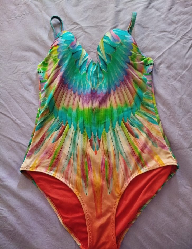 Renkli bohem tarzda, drapeli ve bağlama desenli, kolsuz, vücuda oturan kadın mayo. Plaj için uygun. #mayo #dagi
