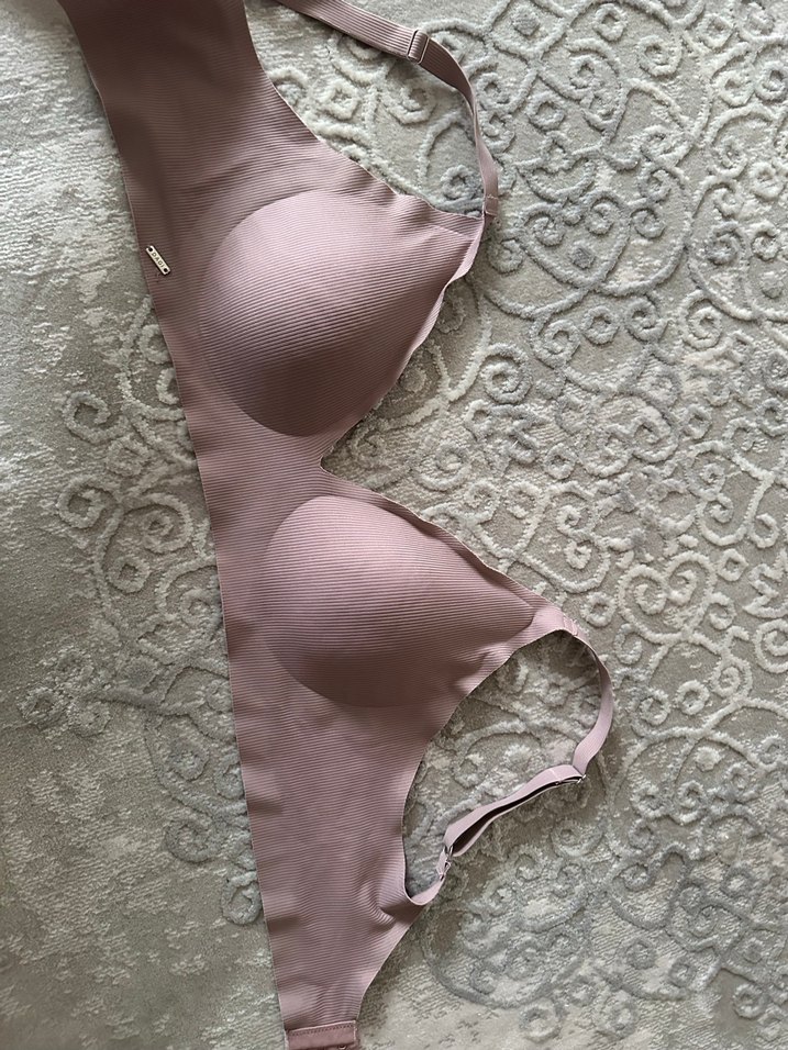 Bej renkte, yumuşak ve rahat kumaştan, ayarlanabilir askılı, bohem tarzda, pastel tonlu dikişsiz sütyen.