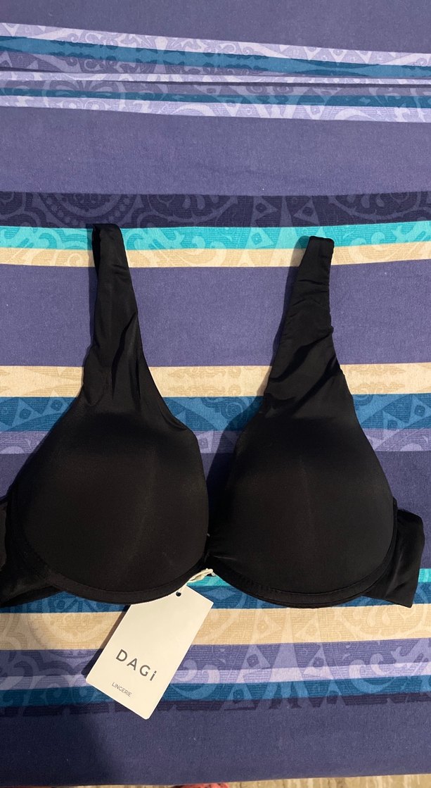 Siyah renkte, normal boyda ve desensiz spor sütyeni. DAGI marka. 80B