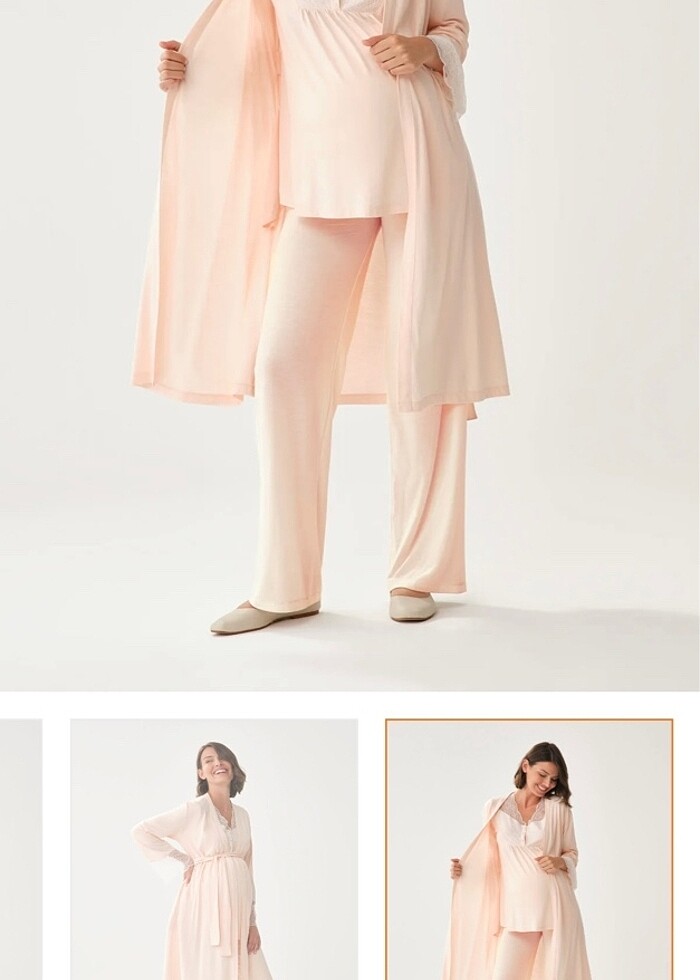 Dagi somon rengi 3 lü lohusa pijama takımı