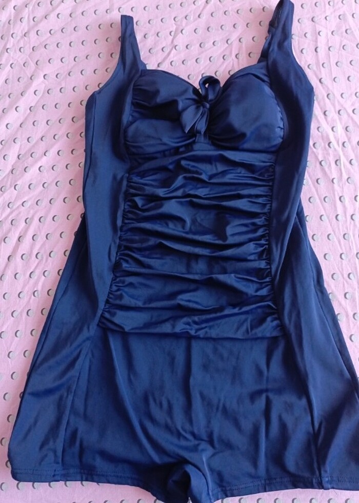 Alt kısmı şortlu kesiminde kalça ve göbek kısmını çok güzel toparlıyor ve ince gösteriyor. Mayo tertemiz sorunsuz ve çok kullanışlı hoş modeldedir. 44 yazıyor ama bir beden küçük kalıp yani 40/42 giyen alsın. Lacivert renk. Alana şimdiden hayırlı olsun hiç pişman olmayacak . Son görselde güncel fiyat ve üstte duruşu vardır.