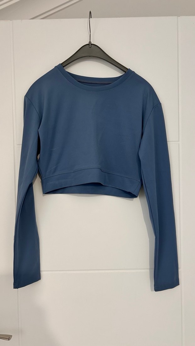 Kadınlara özel, uzun kollu ve bisiklet yaka mavi-gri tonlarında, düz tasarımlı, sentetik kumaştan yapılmış, formda kesime sahip sweatshirt. Spor ve sokak stiline uygun, crop kolları biraz bol. Large Xlarge
