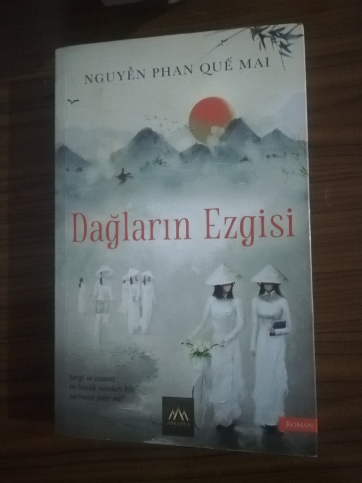 Nguyễn Phan Quế Mai'nin "Dağların Ezgisi" adlı romanı, geleneksel Vietnam temaları ve sakin dağ manzarası içeren şiirsel kapağa sahip.