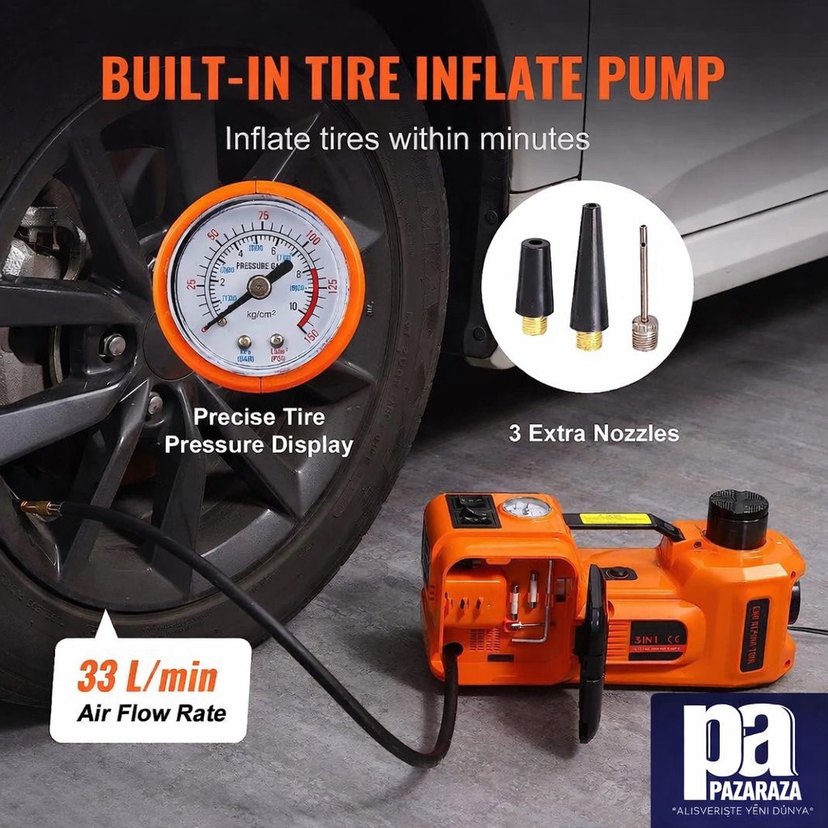 Dahili lastik şişirme pompası, hassas basınç göstergesi ve 3 ekstra başlık içeren vakum. Dakikalar içinde lastik şişirme sağlar.