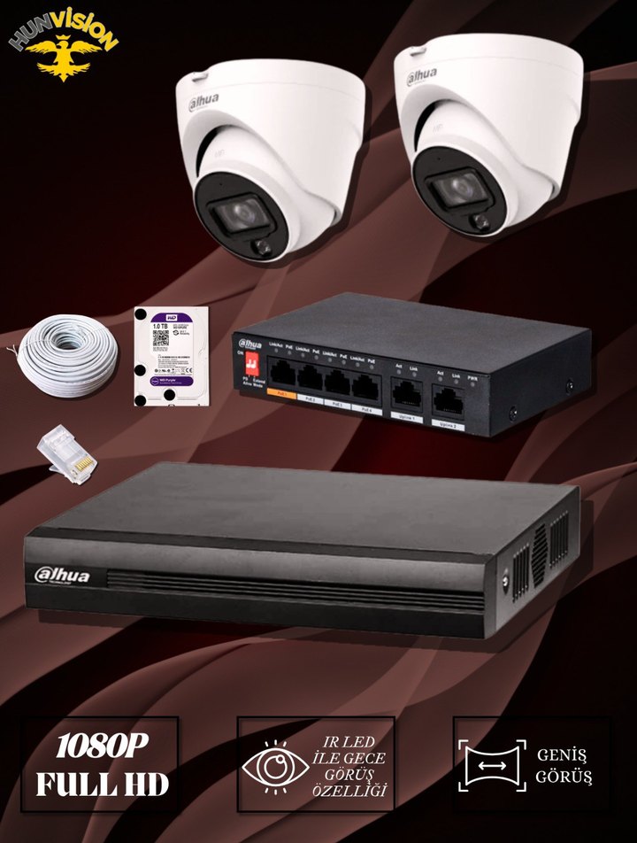 Dahua 2 MP 2 KAMERALI IP / DOME FULL PAKET