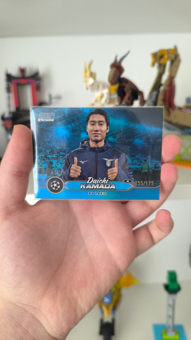Bu erkek rozetinde Daichi Kamada, koyu mavi tonlarda ve normcore tarzda gösterilmiştir. Rozette 'KAMADA, Daichi, 55/175 yazısı bulunmaktadır. ⚽