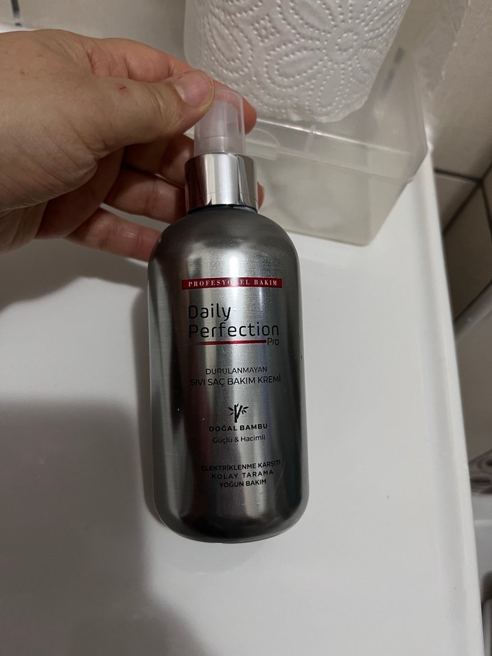 Bambu özlü Daily Perfection saç bakım spreyi, kuruluğu önler ve kolay tarama sağlar. Uzun süreli bakım sunar. Sadece 2 kez kullandım saçlarım çok kuru olduğu için bana uygun gelmedi. Kokusu çok güzel.