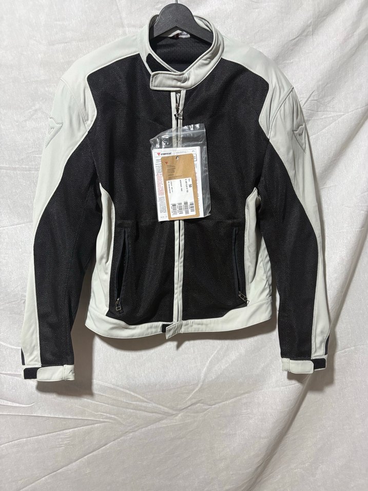 Erkekler için beyaz ve siyah renklerde, uzun kollu, fermuarlı, bisikletçi tarzı dar kesim mont. Rahat ve dış mekan kullanımı için uygundur. Marka Dainese Beden 50 oldukça iyi durumdadır Omuz dirsek korumalıkları mevcuttur Ürün sıfır etiketli üründür Etiket fiyatı 200€ dur Diyer ilanlar için profilimi inceleyebilirsiniz