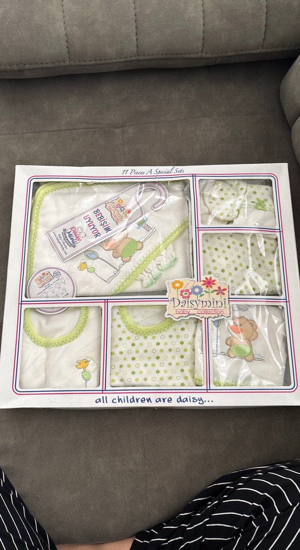 11 parçalık bebek seti. Yeşil detaylar ve neşeli desenler içerir. %100 Pamuktur . Antialerjik . Doğal pamuk ipliğinden üretilmiştir.
