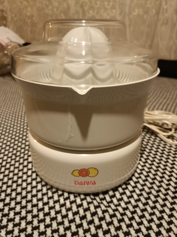 Daiwa markalı beyaz tabanlı ve şeffaf kapaklı narenciye sıkacağı 220 v 20w50/60hz