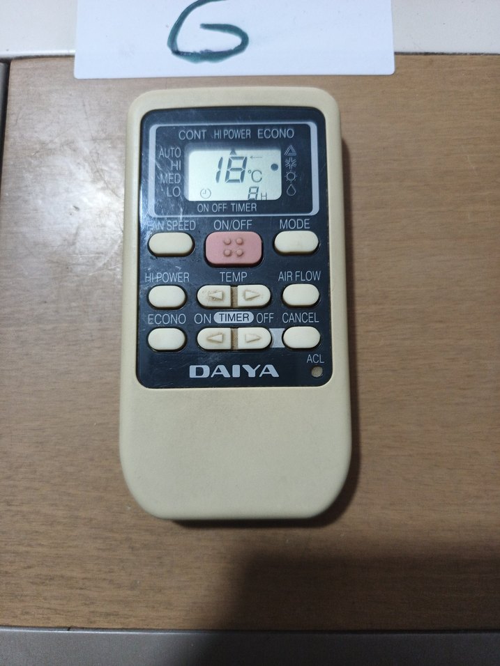 DAIYA marka dijital kumanda, güç, sıcaklık, hava akımı ve zamanlayıcı fonksiyonlarına sahip. Ekranda sıcaklık ve mod ayarları görülür