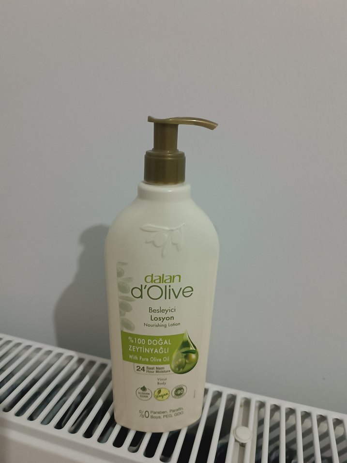 Dalan d'Olive Besleyici Vücut Losyonu %100 doğal zeytinyağı içerir, 24 saat nem sağlar, paraben, silikon ve renklendirici içermez.