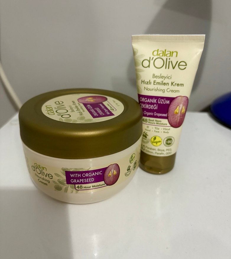 Dalan d'Olive organik üzüm çekirdeği içeren nemlendirici kremi 48 saat besleyici ve hızlı emilen formüle sahiptir. 300gr + 60 gr