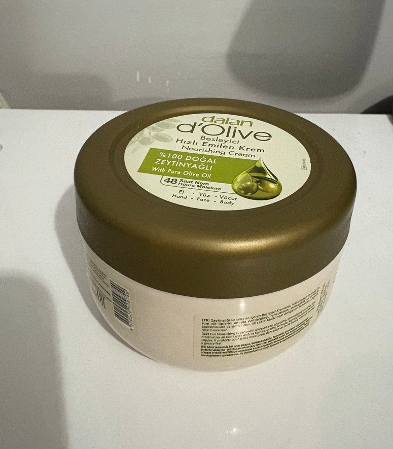 Dalan d'Olive %100 doğal zeytinyağı içeren besleyici vücut kremi, eller, ayaklar ve vücut için 48 saat nem sağlar. 300gr