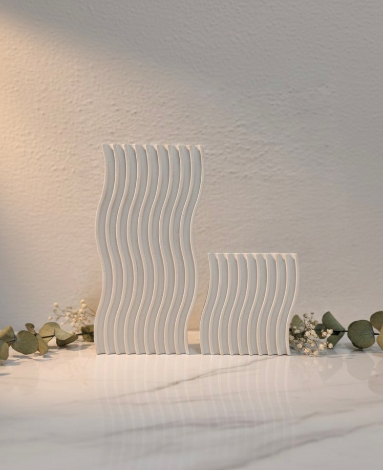 Dalgalı desenli beyaz renkte, iki farklı boyda dekor seti Modern ve şık kıvrımlara sahiptir.