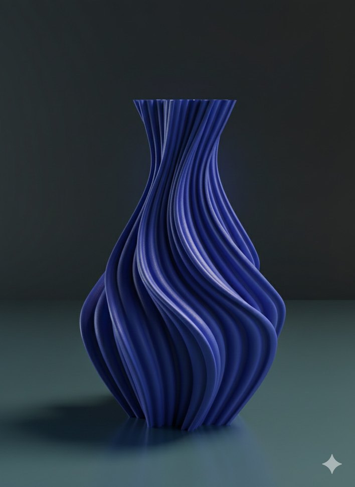 Parlak bej renkte, dalgalı ve heykelsi tasarıma sahip dekoratif vazo.