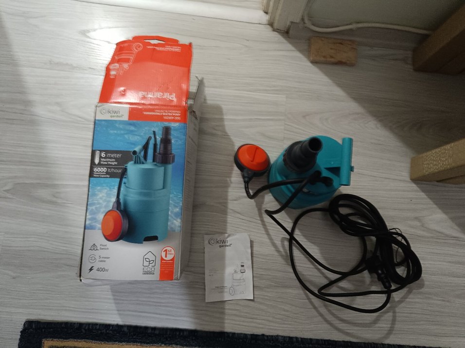 Sıfır Hiç Kullanılmadı.Garantisi Devam Ediyor.Turkuaz ve gri renklerde su pompası, kompakt tasarımı ve otomatik çalışma için bağlı şamandıra anahtarı ile birlikte gelir. Kullanım kılavuzu ve çevre dostu ambalaj içerir. @kiwi