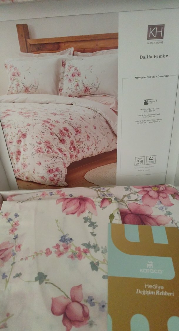 Dalila Pembe nevresim takımı, pastel pembe çiçek desenli yumuşak kumaştan üretilmiştir, yatak odasına zarif ve rahat bir hava katar.