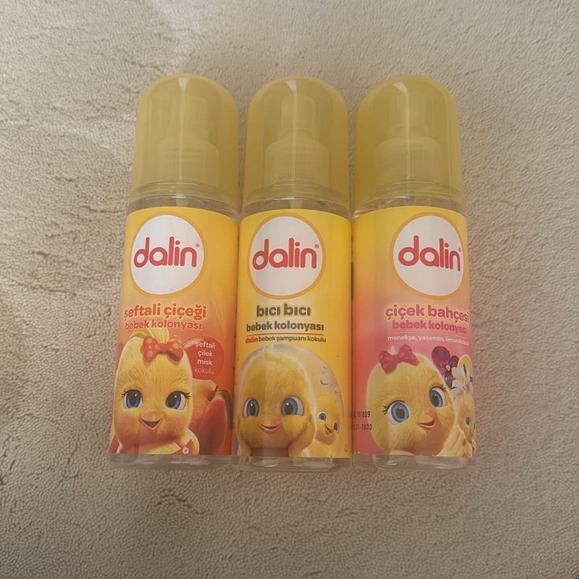 Dalin bebek kolonyası seti; şeftali çiçeği, bici bici ve çiçek bahçesi kokularını içerir. Bebekler için hafif ve ferah kokular. 1 adet 150 ml dalin bıcı bıcı bebek kolonyası ( skt 12/2030) 1 adet dalin 150 ml çiçek bahçesi bebek kolonyası ( skt 01/2030) 1 adet dalin 150 ml şeftali çiçeği bebek kolonyası ( skt 12/2030) 3ü de yenidir hiç kullanılmamıştır