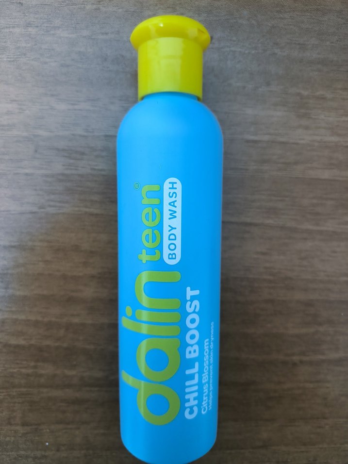 Dalın Chill Boost vücut yıkama jeli, ferahlatıcı koku ve nazik temizleme özelliği sunar. Mavi şişe ve sarı kapak ile tasarlanmıştır.