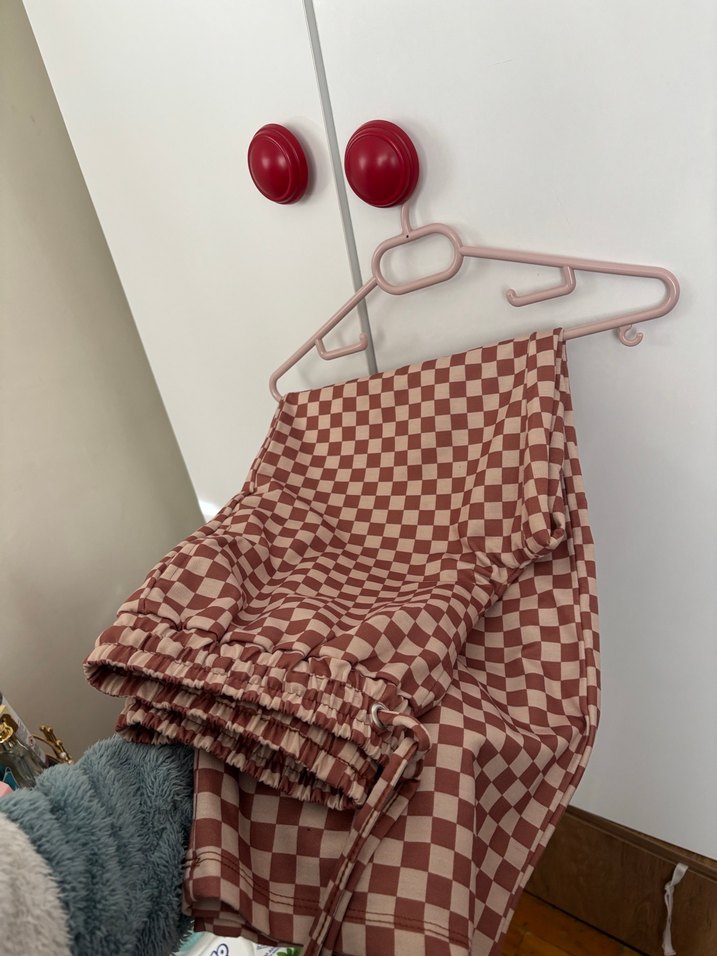 Ürünü bir defa kullandım kahverengi ve bej dama desenli beli ip bağlamalı polyester alt