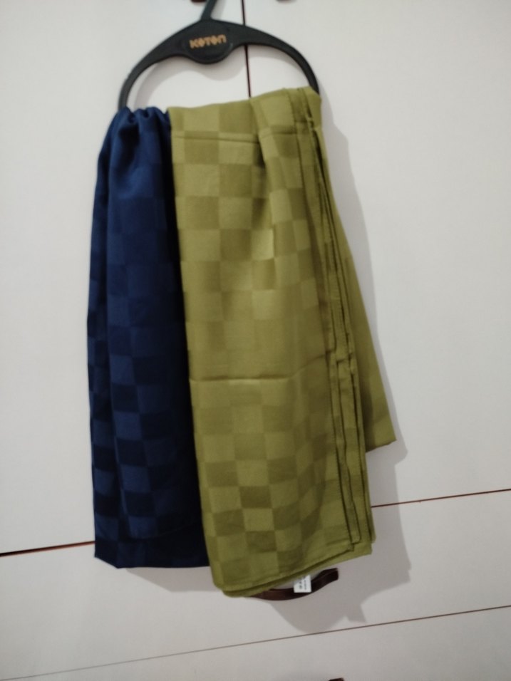 Lacivert ve yağ yeşili renginde dama desenli şal defosu yok