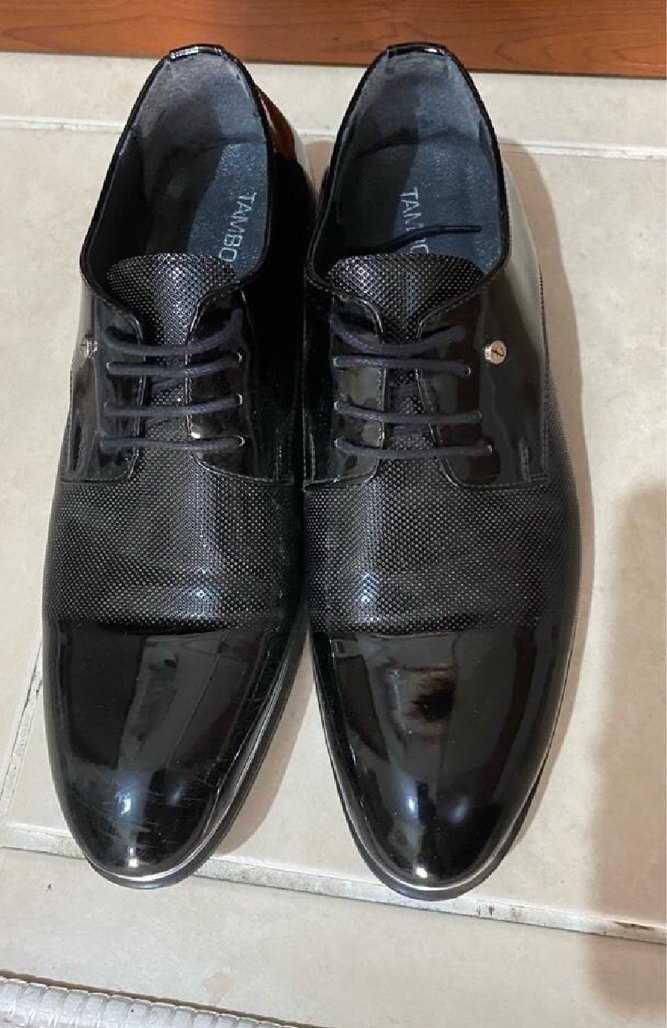 Ofis için uygun, parlak yılan desenli siyah klasik erkek ayakkabısı, kauçuk tabanlı ve gotik tarzda. Damat ayakkabısı olarak almıştık bir kere giyildi