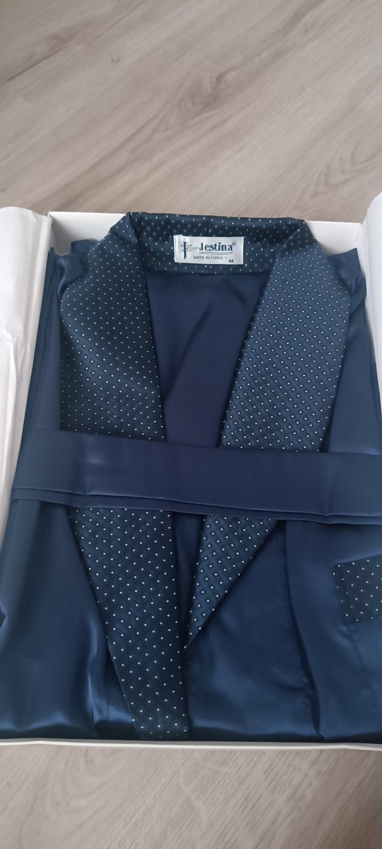 Jestina markalı lacivert erkek sabahlığı, şık kesimli yakaya ve uzun kollara sahiptir. Normal kesim, yumuşak dokuludur. ✨ sabahlık+ gecelik alt üst takımı mevcut