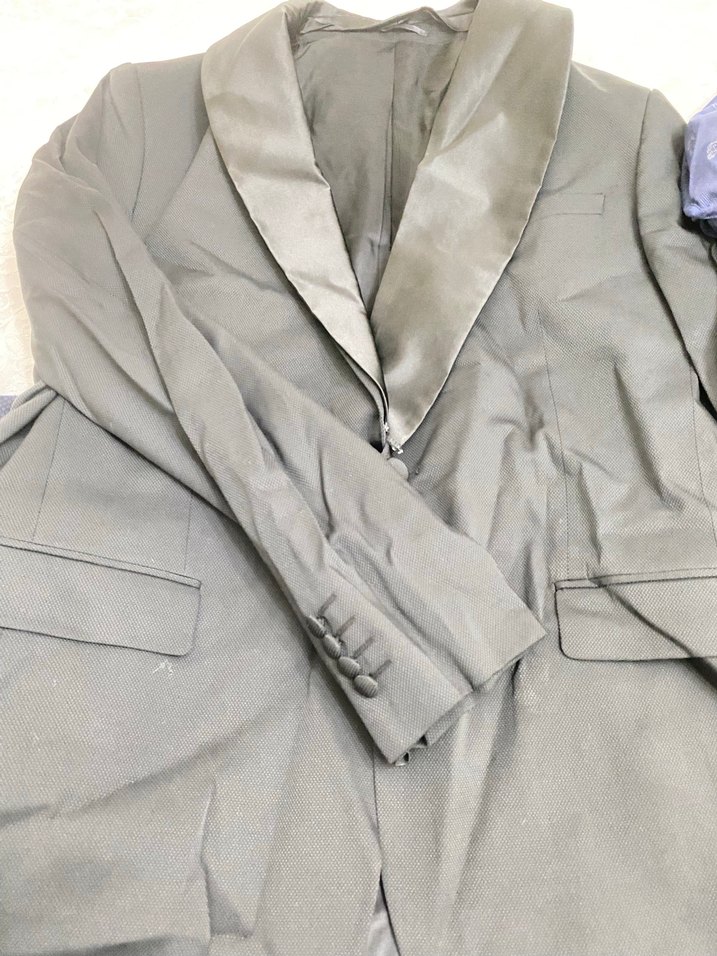 D’S. Markası Siyah kaliteli bir damatlık, Ceket kısmı çıkartılıp günlük hayatta ofis ortamında kullanılabilir. 1 kez 2 saatlik nikahda giyildi. 56 bedendir.