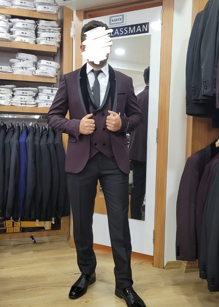 Yalnızca kına gecemizde giyildi. Bedenleri fotografta mevcuttur. Hiçbir deformesi yoktur. Alana pantalon gömlek papyon yelek ve ceket komple takım olarak verilecektir. Kınamizda toplam maliyeti 8 bin ₺ tutmuştu.