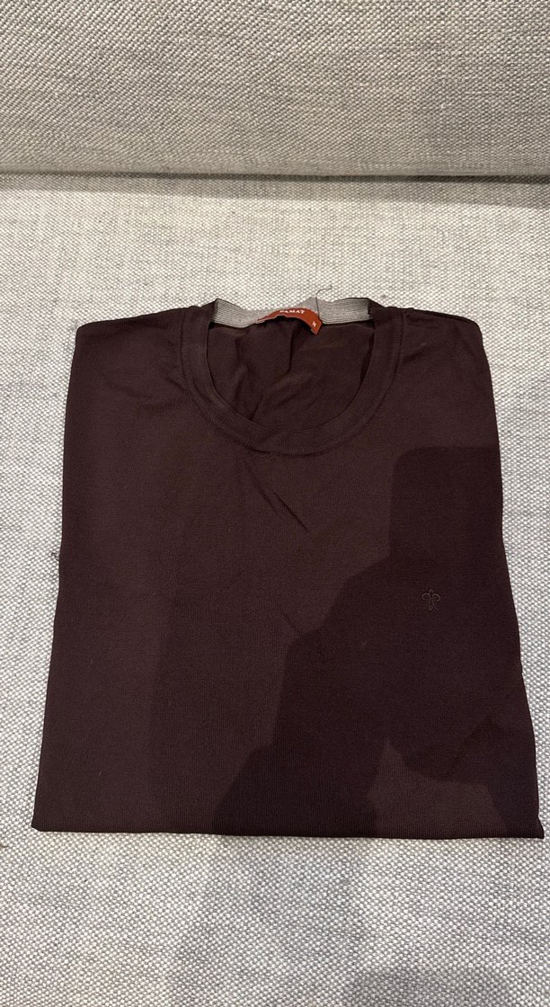 Koyu kahverengi pamuklu, yuvarlak yaka ve bol kesim erkek tişörtü, günlük kullanıma uygun rahat sokak stili sunar. ✨birkaç kez belki giyildi. Önünde minik bi kaçık var düzeltilebilir. Marka temsili