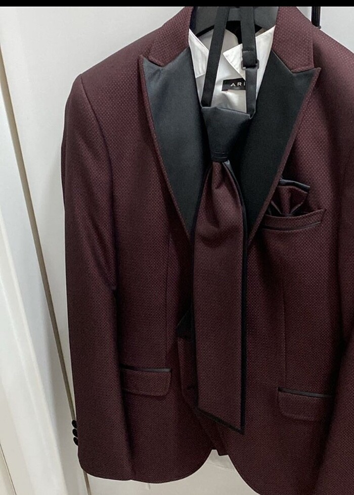 Sadece nişanda giyilmiştir Ceket, yelek, pantolon, gömlek, kravat, papyon set olarak