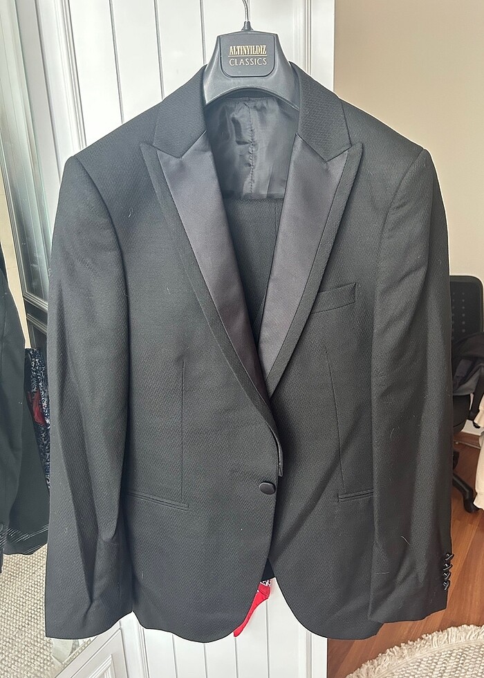 Boy 1.75 Kilo 70 rahatlıkla giyebilir. Ceket, pantolon, yelek, kol düğmeleri, papyon ve ayakkabı halinde takımdır. Ekstra ayakkabıyı yanında hediye vereceğim. Ürün 46#6N bedendir. Sadece nikah merasiminde giyilmiş olup sıfır ayarındadır. Ayrıca smokin yakası çıkarılarakta sade yaka kullanabilirsiniz. Markası:AltınYıldız